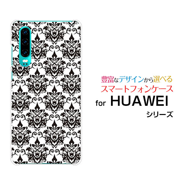 HUAWEI P30ファーウェイ ピーサーティ格安スマホオリジナル デザインスマホ カバー ケース ハード TPU ソフト ケースダマスク柄(ホワイト)