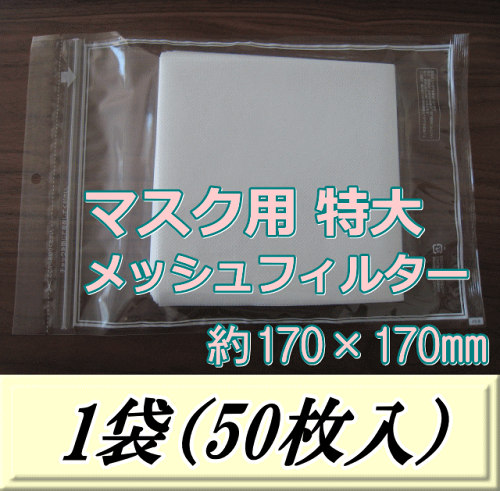 【新発売!即納】レビューをお願い致します◆メール便送料無料!◆マスク用 特大 メッシュフィルター 約170×170mm 1袋(50枚入) 日本製 チャック付シーラー止め袋入り 取り替えシート コロナ ウイルス 花粉症 対策 業務用 激安 大量 使い捨てマスク・手作りマスク用